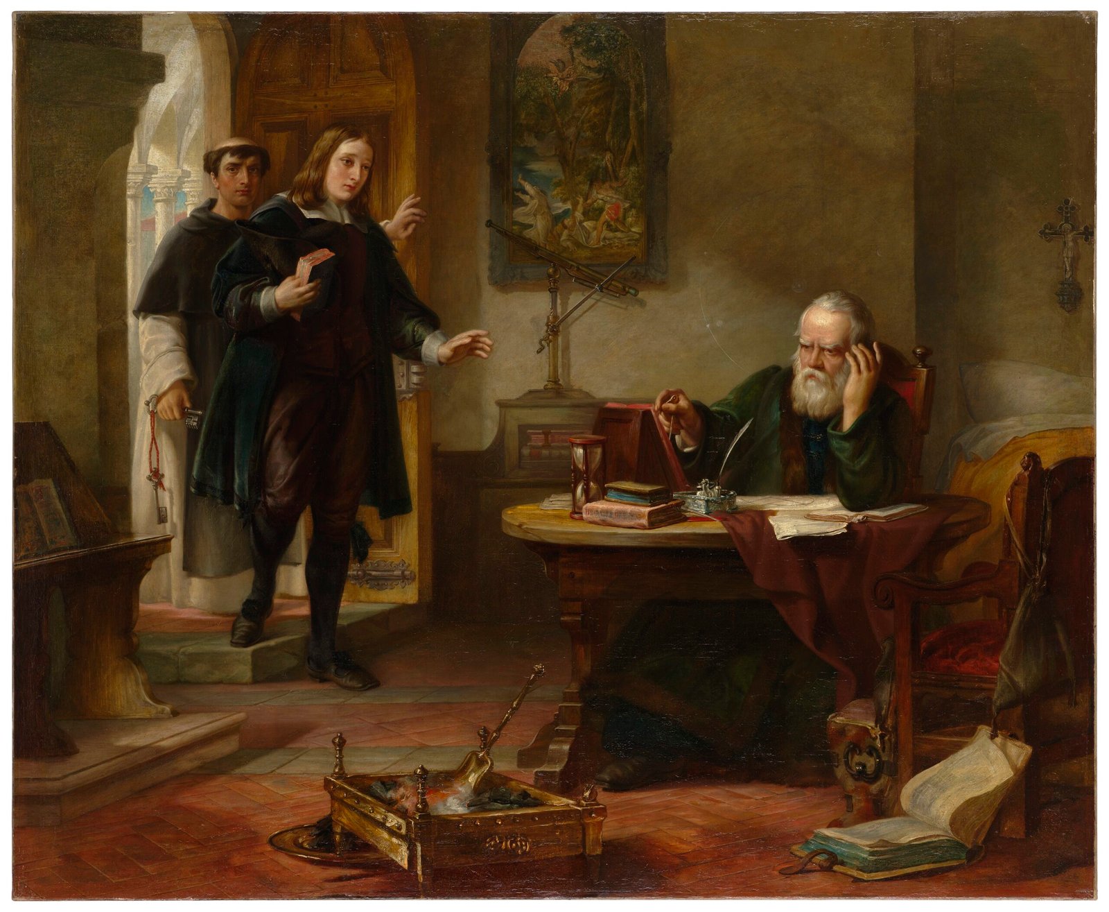 Ну а главной фигурой нового естествознания становится собственно сам Галилео Галилей (1564-1642), которого можно считать создателем математической физики раннего Нового времени. Для начала пройдемся по нему вкратце. Галилей настаивал, что «книга природы написана на языке математики», и окончательно заменил качественные рассуждения схоластов количественными измерениями, создав таким образом новый научный метод. В механике он окончательно сформулировал и экспериментально доказал закон инерции и принцип относительности (знаменитый пример с «кораблем Галилея»), а также установил, что скорость падения тел не зависит от их массы. Галилей объединил архимедову статику с динамикой, и это было настоящим прорывом, ведь теперь было доступно применение геометрии к движущимся объектам. Хотя часто Галилея называют эмпириком, и в этом действительно есть значительная доля правды, но многие его выводы, например, о падении тел в вакууме, были логическими конструкциями, мысленными экспериментами, так как создать идеальный вакуум в XVII веке было невозможно. Здесь особенно важно, что Галилей ввел принцип абстрагирования, когда догадался, что реальное сопротивление воздуха — это «помеха», которую нужно отбросить в расчетах, чтобы увидеть чистый закон. За защиту гелиоцентризма Коперника в книге «Диалог о двух главнейших системах мира» Галилей был осужден инквизицией в 1633 году и провел остаток жизни под домашним арестом. Это если описать его жизнь и достижения совсем уж коротко. Но ввиду исключительной важности Галилея, как ученого нового типа, почти свободного от метафизического мракобесия неоплатоников, мы опишем его биографию детальнее, чем для кого либо другого в этой статье.